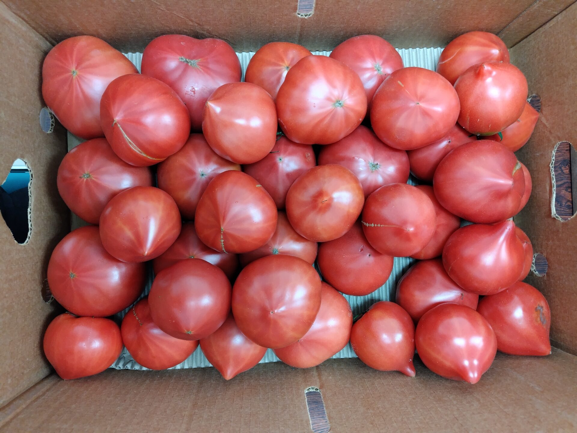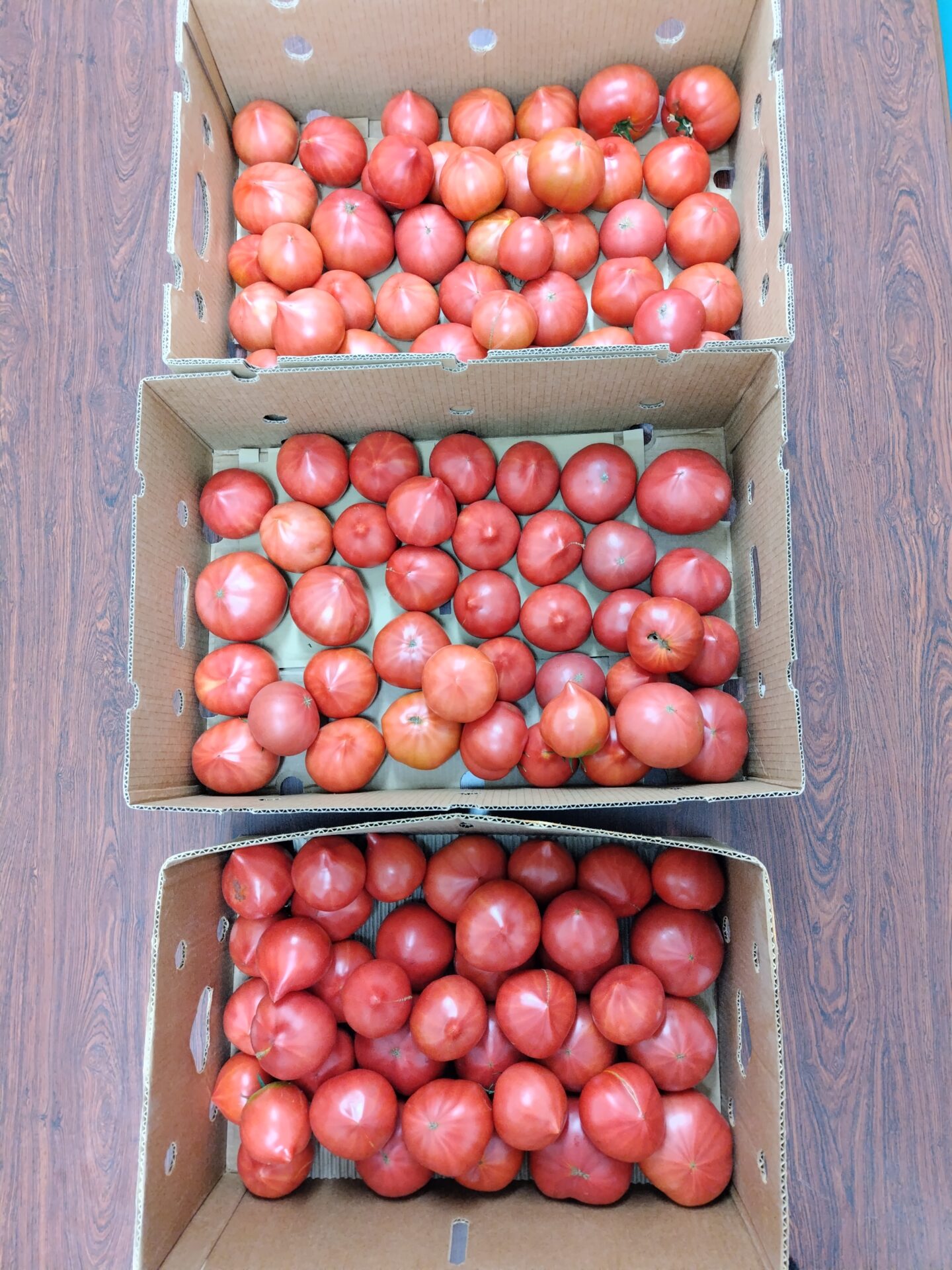 熊谷市内在住の藤野様から、今年もたくさんのトマト(大きいダンボ-ル3箱分)をいただきました。